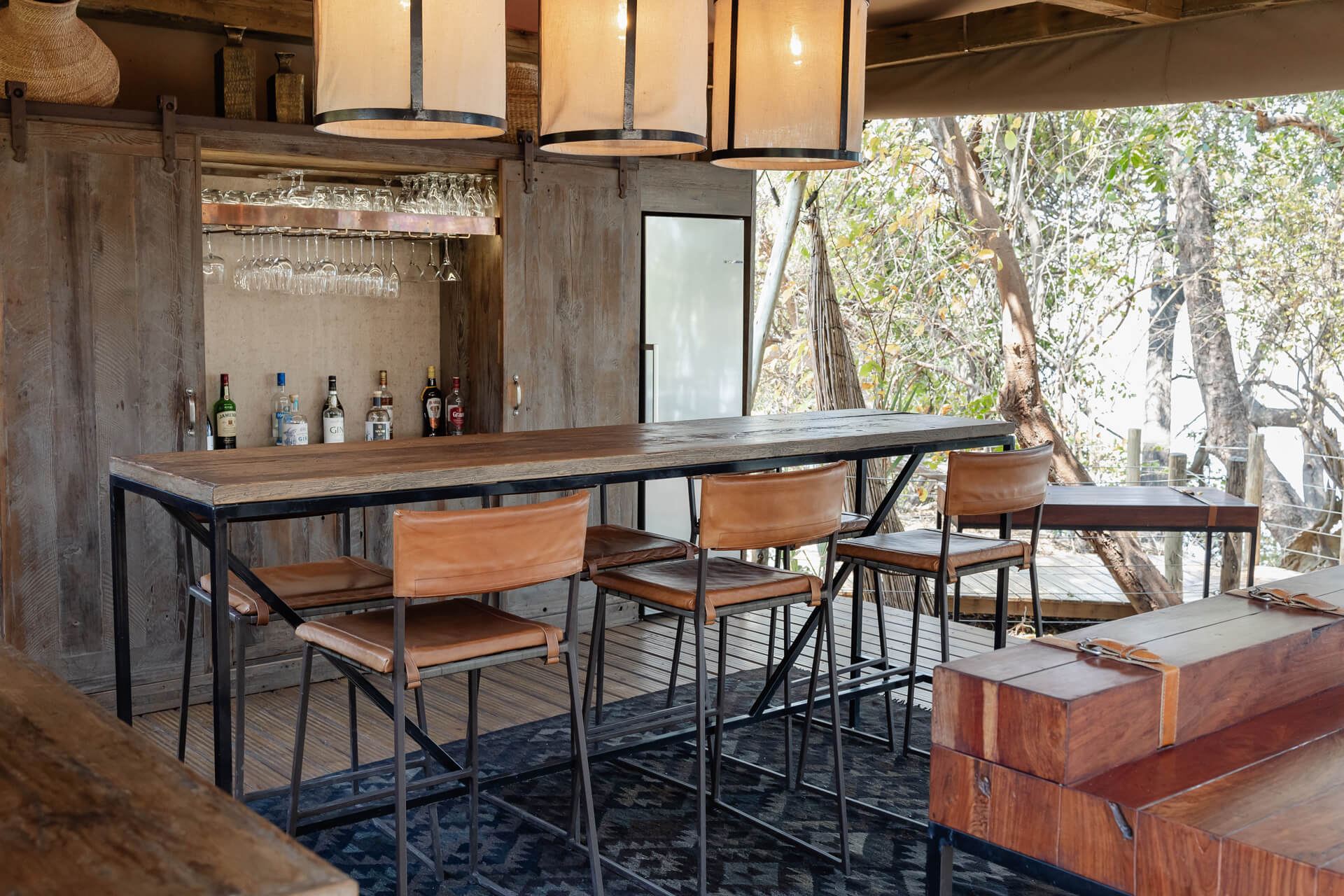 The safari tented camp comprises a stylish lounge and dining area for 16 guests. The bar tent is adjacent to this main living area. The vast outside deck makes the most of its river-front setting, and is also in the cool forest. It has an open-air dining area flowing onto a sunken fire-pit which overlooks the river. The main lodge is linked to the pool which is in a sunny spot, from which you may enjoy your favourite cold drink while watching the river glide by.