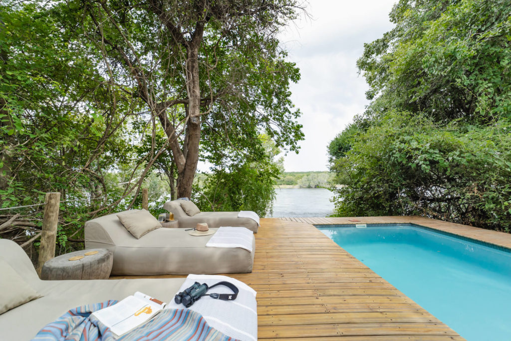 The safari tented camp comprises a stylish lounge and dining area for 16 guests. The bar tent is adjacent to this main living area. The vast outside deck makes the most of its river-front setting, and is also in the cool forest. It has an open-air dining area flowing onto a sunken fire-pit which overlooks the river. The main lodge is linked to the pool which is in a sunny spot, from which you may enjoy your favourite cold drink while watching the river glide by.